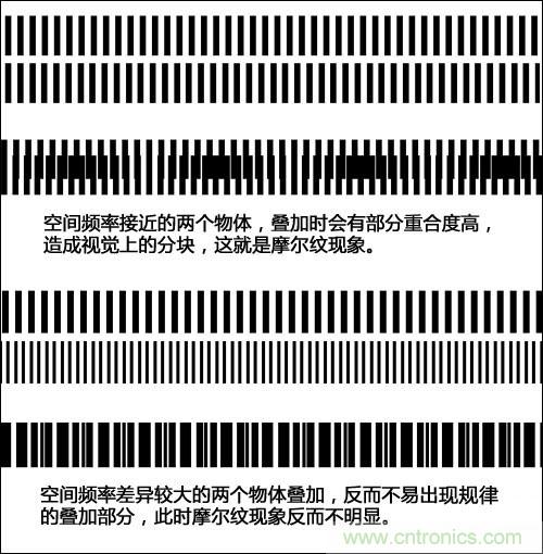 圖3:不同空間頻率物體疊加後的摩爾紋現象