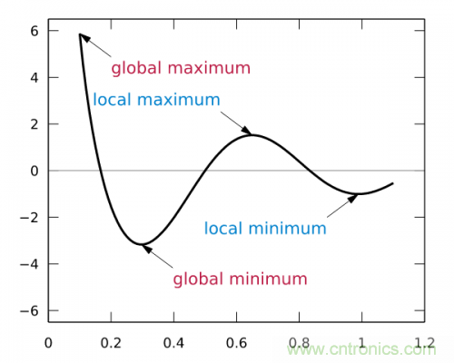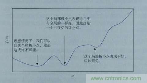 這樣,斜率為0時我們其實就得到了函數f在該點可以得到最小值。那麼,把x向xiang左zuo或huo者zhe向xiang右you移yi一yi點dian,到dao底di移yi多duo少shao呢ne?如ru果guo移yi多duo了le,可ke能neng移yi過guo了le,如ru果guo移yi得de很hen少shao,則ze可ke能neng要yao移yi很hen久jiu才cai能neng找zhao到dao最zui小xiao點dian。還hai有you一yi個ge問wen題ti,如ru果guof(x)操作函數有多個局部最小點、全局最小點時,如果x移的非常小,則可能導致通過導數隻能找到某個並不足夠小的局部最小點。如下圖所示: