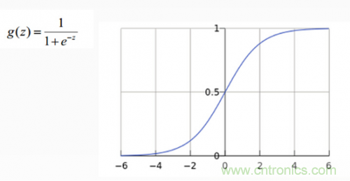 從上圖示例可見,雖然輸入照片是貓,但得分上屬於狗的得分值437.9最高,但究竟比貓和船高多少呢?很難衡量!如果我們把得分值轉化為0-100的百分比概率,這就方便度量了。這裏我們可以使用sigmoid函數,如下圖所示: