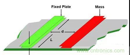 單個 MEMS 加速計的結構采用固定矽板以及用於響應外力的機械彈簧(圖 2)。