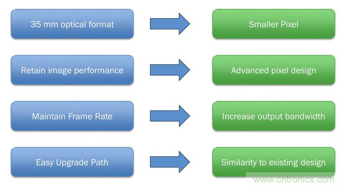 為了在保留35 mm光學格式的同時,將器件(例如KAI-29050)的分辨率從現有的2900萬wan像xiang素su繼ji續xu提ti升sheng,就jiu需xu要yao更geng小xiao的de像xiang素su格ge式shi,以yi便bian將jiang更geng多duo像xiang素su放fang置zhi於yu給gei定ding區qu域yu中zhong。但dan為wei同tong時shi保bao留liu這zhe一yi較jiao小xiao像xiang素su中zhong的de關guan鍵jian成cheng像xiang參can數shu,如ru圖tu像xiang均jun勻yun性xing、動態範圍和底噪,除了簡單地縮小尺寸外,還需要提升像素設計。
