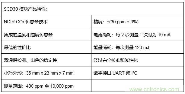 Sensirion麵向暖通空調係統和室內空氣質量監測的傳感器模塊SCD30
