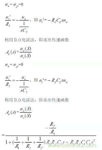 對於二階壓控低通濾波器來說,當通帶放大倍數Aup =1(單位增益)時,圖所示電路變為圖所示,其中RF=R1+R2。