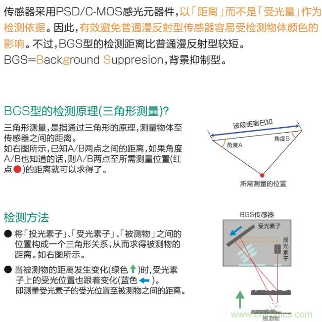 背景抑製型光電傳感器:可以有效避免普通漫反射傳感器容易受檢測物體顏色的影響。