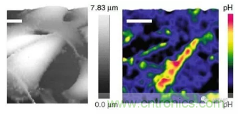 研究人員著重強調了該裝置可以實時反饋所控製的細胞外pH值動態3D映射,並且可以檢測出“無標記和亞細胞分辨率”癌細胞的異質性。他們總結道,“該方法有助於癌症的診斷、預後和評估酸性pHe(細胞外pH值)靶向治療。”
