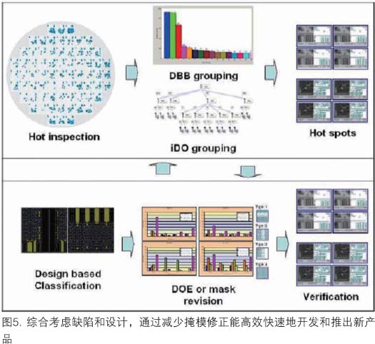 用yong與yu設she計ji相xiang關guan的de檢jian測ce設she置zhi,現xian在zai可ke以yi產chan生sheng更geng智zhi能neng化hua的de檢jian測ce菜cai單dan,注zhu意yi力li集ji中zhong在zai最zui重zhong要yao的de芯xin片pian區qu域yu。這zhe一yi技ji術shu已yi成cheng功gong地di在zai開kai發fa和he生sheng產chan工gong廠chang中zhong進jin行xing了le試shi驗yan。引yin入ru新xin方fang法fa後hou,缺que陷xian識shi別bie更geng有you效xiao,因yin而er能neng通tong過guo分fen析xi實shi驗yan結jie果guo減jian少shao工gong藝yi開kai發fa時shi間jian(圖5)。由於能方便地監控關鍵結構,就可以評估每一組實驗,以便選擇刻印圖形結果最好的工藝條件。